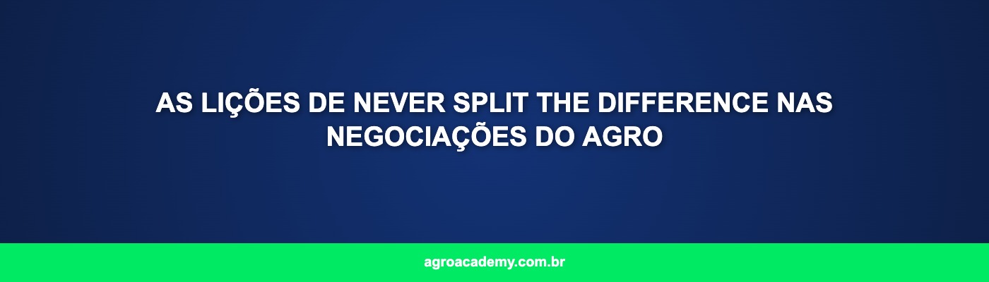 Never Split the Difference é livro bestseller de Chris Voss sobre negociação. Ex-agente do FBI, Voss descobriu princípios de negociação que salvaram vidas em situações de reém. Surpreendentemente, esses mesmos princípios funcionam excepcionalmente bem em negociações de agronegócio: quando você está negociando preço de insumo, entrada em novo mercado, ou fechamento de grande conta.