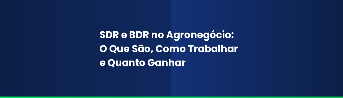 Nos próximos tópicos, você vai entender exatamente o que fazem um SDR e um BDR no contexto do agronegócio, quais são as diferenças entre os dois cargos, quais habilidades são necessÔrias, quanto eles ganham e como você pode se tornar um profissional de alta performance nessa Ôrea.